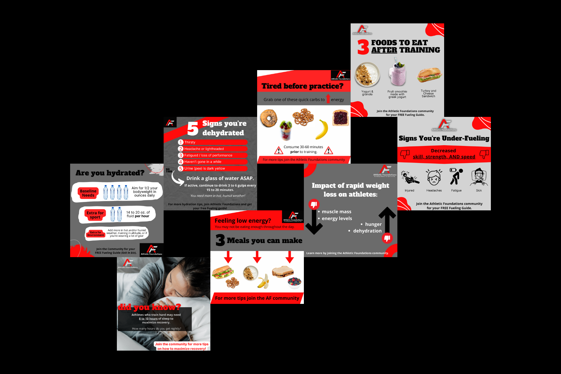 Have a library of done-for-you sports nutrition and recovery social media posts, guides, handouts, and videos at your fingertips to give your athletes the essential, evidence-based guidance they need to adapt faster and compete harder.